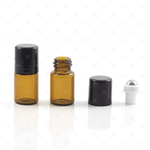 Съдържание: 5 х 5/8 (2 мл.) драма амбър ролон бутилки, ролери от стомана и черни капачки.