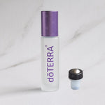 Съдържание: Комплект от 2 x 10 мл. doTERRA брандирани заскрежени прозрачни стъклени ролон бутилки, първокласни ролери от неръждаема стомана и метални лилави капачки.