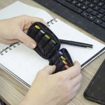 Дръжте любимите си етерични масла под ръка, където и да отидете! Този удобен несесер с ключодържател побира 8 малки бутилки от ⅝ драма (2 мл.) или 16 бутилки от ¼ драма (1 мл.). Подплатената конструкция предпазва бутилките, а здравите еластични ремъци ги държат сигурно на място. Перфектен за пътуване, импровизирани презентации и ежедневна употреба! Логото на dōTERRA® го прави страхотен подарък за членове на екипа и потенциални клиенти. Също полезен за комплект масла за спешни нужди.