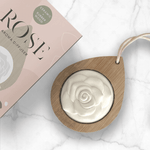 Създайте спокойна атмосфера и прогонете миризмите с този красив пасивен дифузер с форма на роза, изработен от керамика и натурално каучуково дърво.