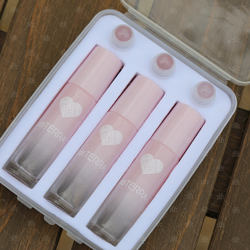 Тези 10 мл. ролон бутилки с цвят на пудра, подчертани с красиво сърце и брандирани doTERRA, ролери от розов кварц и практична пластмасова кутия за съхранение са чудесни както за лична употреба, така и за арома срещи или като подарък за специални хора в живота ви.