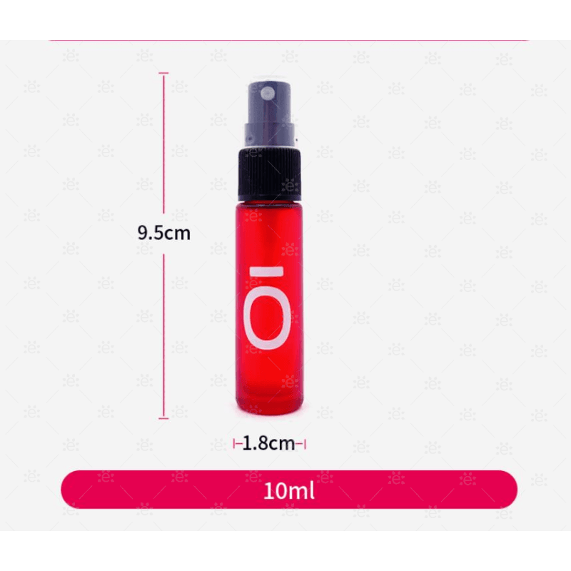 Съдържание: 1 x 10 мл. стъклена бутилка от заскрежено лилаво стъкло с черен спрей накрайник за фина мъгла и прозрачни пластмасови капачки.