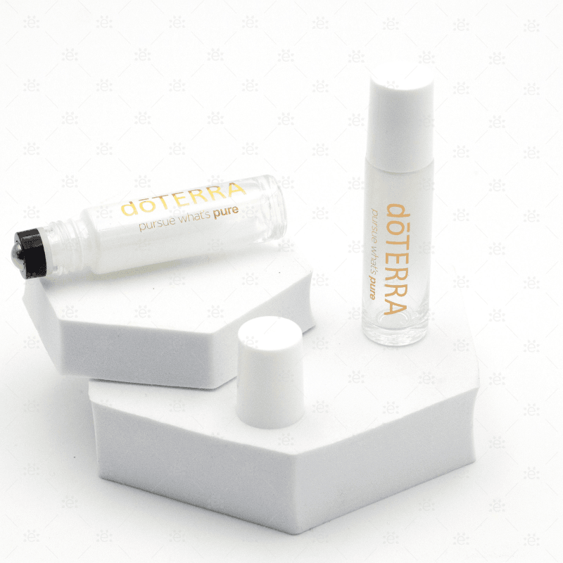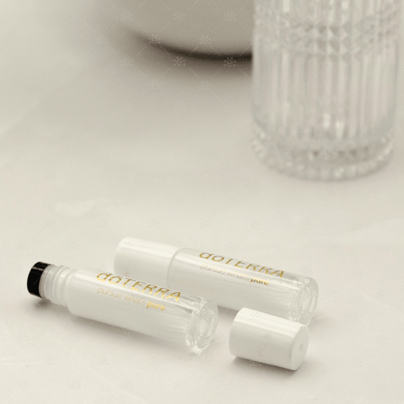Съдържание: Комплект от 2 x 10 мл. doTERRA брандирани перлени стъклени ролон бутилки, първокласни ролери от неръждаема стомана и бели капачки.