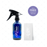 Съдържание: 1 x 240 мл. спрей бутилка от синьо стъкло с черен спрей накрайник, опакована с 2 бели декоративни стикера от винил и лист с рецепти.