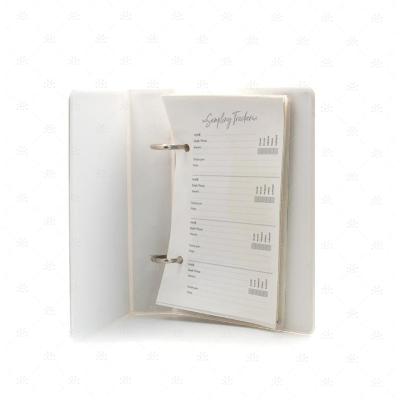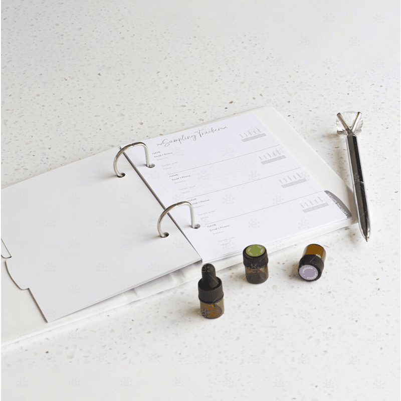 Благодарение на разделителите за единични масла и блендове, търсенето и организирането на вашите етикети никога не е било по-лесно! Освен това този класьор е перфектния бизнес инструмент за даване на мостри, който ви позволява да следите мострите, които сте раздали, и да си водите бележки за хората, които срещате всеки ден! В края на папката ще намерите и раздел Необходими аксесоари, където може да си водите бележки за аксесоарите, които искате/трябва да поръчате следващия път. По този начин ще знаете точно от какво имате нужда!