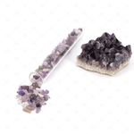 Тези полирани камъчета от аметист се предлагат в стъклена бутилка с алуминиев капак на винт за лесно разпределяне между вашите ролон бутилки. Тези скъпоценни камъни са достатъчно малки, за да се поберат в стандартен отвор на ролон бутилка от 10 мл., но може да се наложи сами да подберете от тях, ако искате да ги поставите в малка бутилка за мостра.