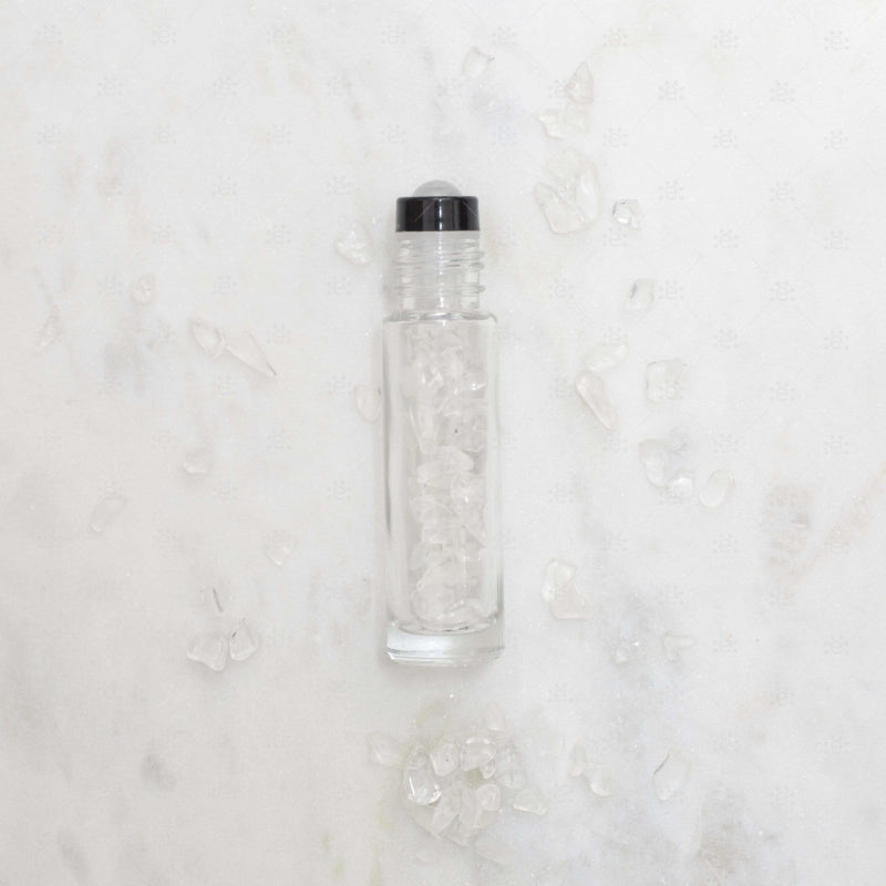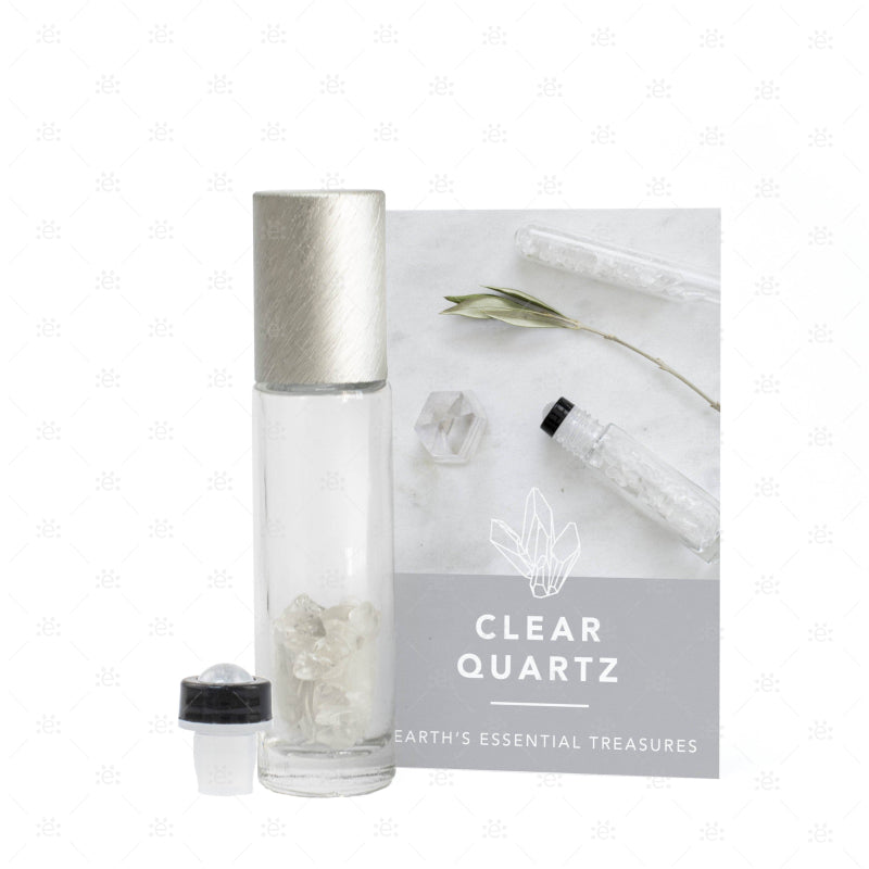 Съдържание: 1 x ролон накрайник със скъпоценен камък прозрачен кварц, прозрачна ролон бутилка от 10 мл., пълна приблизително с 1/3 с малки скъпоценни камъни прозрачен кварц, алуминиева капачка и карта с инструкции.